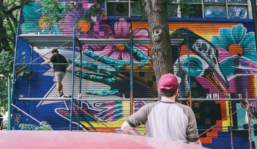 Flori în Floreasca este un exemplu concret despre cum arta își poate găsi locul oriunde… chiar și pe o centrală termică de pe strada Banul Antonache, nr. 71. Realiat de Home Boy, Pandele, KAPS Crew, Pulsar Sinaps